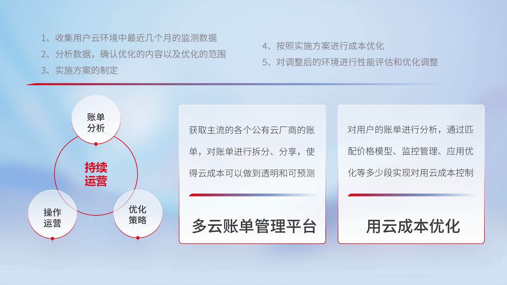 监控业务系统资源开销,,,,对资源的消耗精确计量,,,,实现费用的透明化管理,,不断提升资源使用率,,,调整资源购买方式,,,降低资源费用成本,,,用云成本可预测、、、用云费用可优化,,,,云资源配额有据可依。。